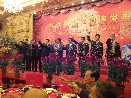 金虎奮蹄開錦繡,玉兔迎春展宏圖;辭舊迎新齊相聚,金馬歡慶喜迎春。2011年2月14日晚,張溪海港城宴會大廳燈火輝煌,喜氣洋洋,金馬公司“開拓創(chuàng)新,穩(wěn)健發(fā)展”2010年總結(jié)表彰暨2011年新春聯(lián)誼晚會在此隆重舉行。