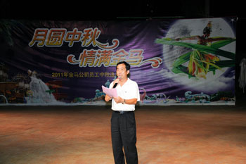 2011年9月13日農(nóng)歷八月十六晚上7:30-9:30,“月圓中秋、情滿金馬”員工中秋追月晚會(huì)以情相聚,在燈籠的點(diǎn)點(diǎn)暖光中,公司職工及家屬將近600人聚首長江水世界,在滿載金馬濃情的節(jié)目中共度追月良辰。