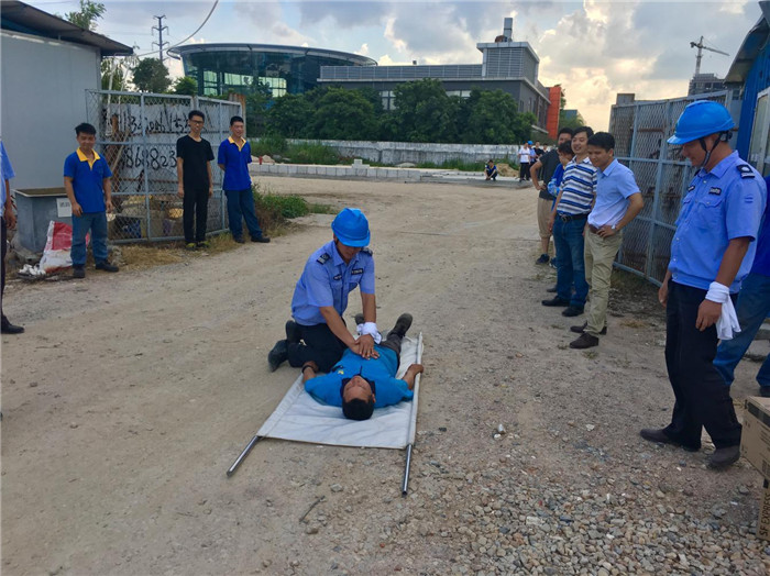 模擬火災(zāi)現(xiàn)場消防演習(xí)設(shè)定30畝產(chǎn)品堆放區(qū)為著火點(diǎn),分為四個(gè)組配合完成任務(wù)。第一組(滅火組)快速趕到事發(fā)地切斷電源,組員接好水帶水槍,用滅火器滅火;第二組(人員疏散組)組織疏散現(xiàn)場周圍人員,沿出口指示方向撤至一樓安全地方,保證樓道暢通,防止踩踏事故;第三組(人員物資搶救組)配合滅火組清理現(xiàn)場周圍物品,開辟防火隔離帶,救護(hù)傷員,用人工呼吸作簡單救治;第四組(照明、通訊組)配合其他三組負(fù)責(zé)場地照明、報(bào)警、模擬說明地址接警車、保證車道暢通到事發(fā)現(xiàn)場,滅火后留現(xiàn)場值班,防止二次火災(zāi)發(fā)生。