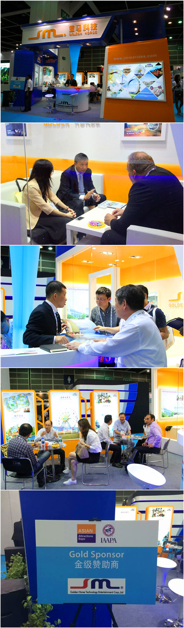 作為本屆亞洲展的金級贊助商,公司專注游樂創(chuàng)新、著力引領行業(yè)發(fā)展,特裝展位由公司外觀設計團隊自主創(chuàng)作,成為亞洲展的一道亮麗的風景線。在為期三天的展會中,金馬吸引了超過百位客商到場參觀、咨詢,展位中人流絡繹不絕,創(chuàng)意十足的產(chǎn)品、熱情周到的服務給客商留下了深刻的印象。