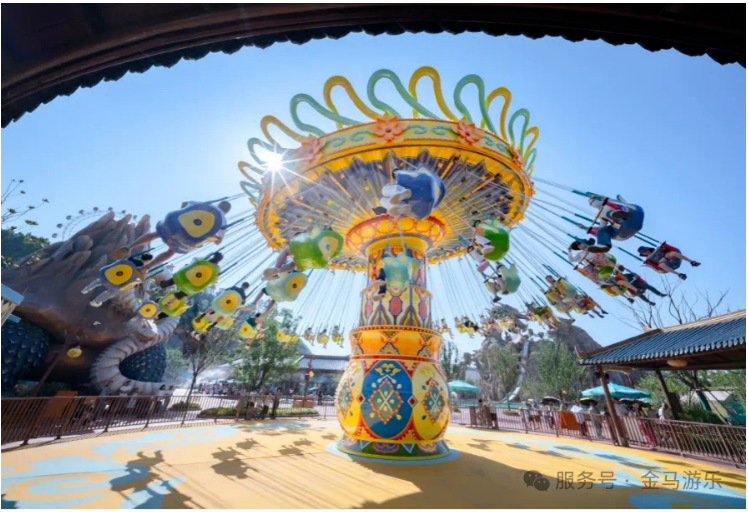 在資陽方特國色春秋中,摩天輪、自控飛機、跳傘塔、太空梭、海盜船等十余款游樂設(shè)備,均由金馬游樂進行主題化外觀定制。憑借規(guī)模領(lǐng)先的專業(yè)技術(shù)團隊與成熟的定制服務體系,金馬從數(shù)字化設(shè)計、建模,到國際水平的工藝制作,全程把控,最終實現(xiàn)藝術(shù)級主題呈現(xiàn),強化設(shè)備與園區(qū)主題環(huán)境的深度融合,營造出高品質(zhì)的沉浸式游樂氛圍。