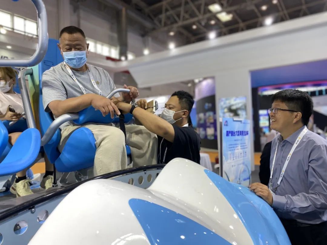 金馬文旅科技在本次展會上集中展示了飛行影院、黑暗乘騎、4D影院等多個虛擬沉浸式系列產(chǎn)品的落成案例,96座翻轉(zhuǎn)式飛行影院《飛躍泰山》、6自由度動感黑暗乘騎《盤古開天》呈現(xiàn)出的震撼效果體現(xiàn)了金馬文旅科技在沉浸式項目創(chuàng)意設(shè)計、內(nèi)容策劃及總體集成能力的跨越式進步,近兩年打造的一個又一個虛擬沉浸式高科技文旅示范標(biāo)桿項目,有效引領(lǐng)了行業(yè)創(chuàng)新,助力數(shù)字沉浸式產(chǎn)品高質(zhì)量發(fā)展,得到前來觀展、交流的行業(yè)領(lǐng)導(dǎo)、專家認可與贊賞,客商合作意向不斷。