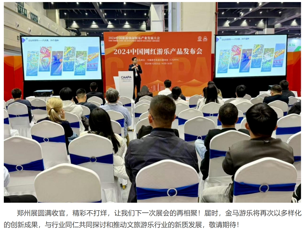 10月24-26日,由中國游藝機游樂園協(xié)會(CAAPA)主辦的2024中國(鄭州)旅游休閑娛樂產(chǎn)業(yè)博覽會在鄭州國際會展中心舉行,本次博覽會及相關(guān)活動,旨在進(jìn)一步推動文旅休閑娛樂行業(yè)的發(fā)展與繁榮,促進(jìn)文化旅游與多業(yè)態(tài)深度融合,助力旅游業(yè)現(xiàn)代化建設(shè)和高質(zhì)量發(fā)展。公司董事長鄧志毅先生與眾多行業(yè)領(lǐng)導(dǎo)、嘉賓共同出席了開幕儀式。
