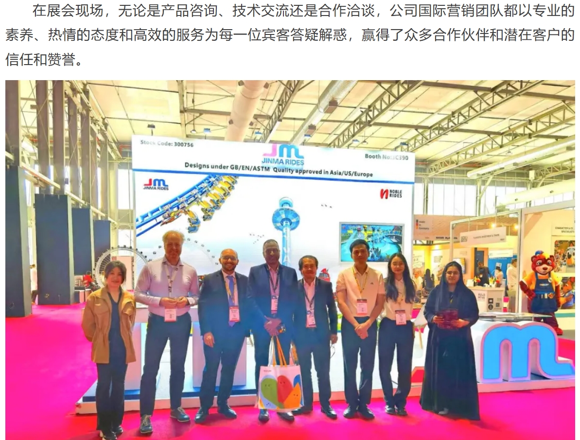 中東市場具有獨特文化和消費習(xí)慣,公司將根據(jù)市場特點進一步優(yōu)化產(chǎn)品設(shè)計和服務(wù)方案,以更加貼合當(dāng)?shù)匦枨蟮挠螛费b備產(chǎn)品和解決方案力求取得更大突破,持續(xù)深耕中東市場。同時,公司也將以此為契機,進一步加大全球市場拓展力度,期待與全球客戶攜手合作,共同開創(chuàng)游樂裝備行業(yè)的美好未來。