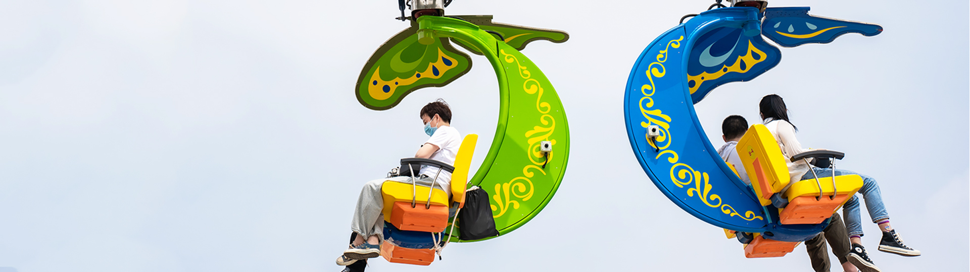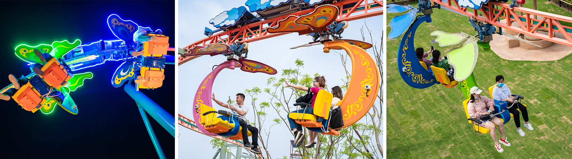 攬?游覽?以?亮為造型,?卡在??電機(jī)驅(qū)動(dòng)下沿?平路軌??并帶動(dòng)?卡兩側(cè)的翅膀扇動(dòng),運(yùn)動(dòng)?式獨(dú)特,外觀吸睛。同時(shí)懸掛的座艙可由乘 客通過?動(dòng)搖桿控制旋轉(zhuǎn),增加游客操控趣味性。