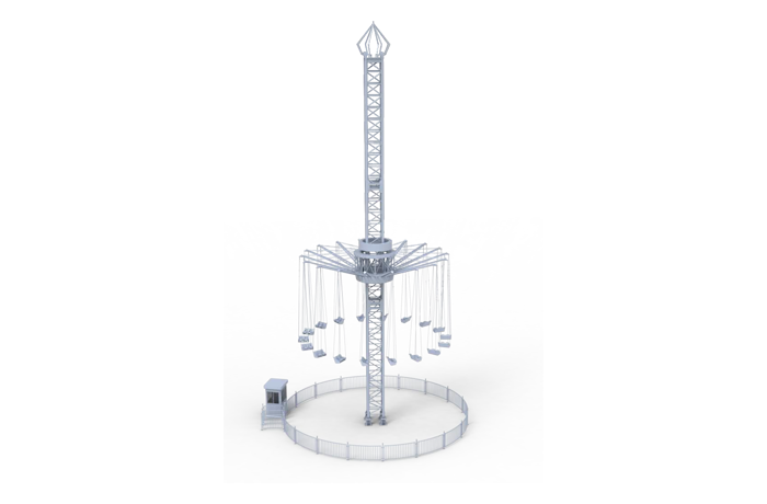 飛行塔設(shè)備由塔體、滑?架、吊椅三部分組成。獨(dú)有雙人座椅設(shè)計(jì),隨著速率越來(lái)越快,座椅在半空中向外飄散,在整個(gè)游玩過(guò)程中乘客可充分享受高速飛行的暢快,刺激又浪漫。