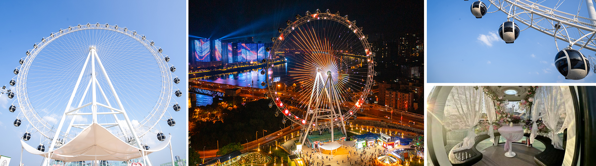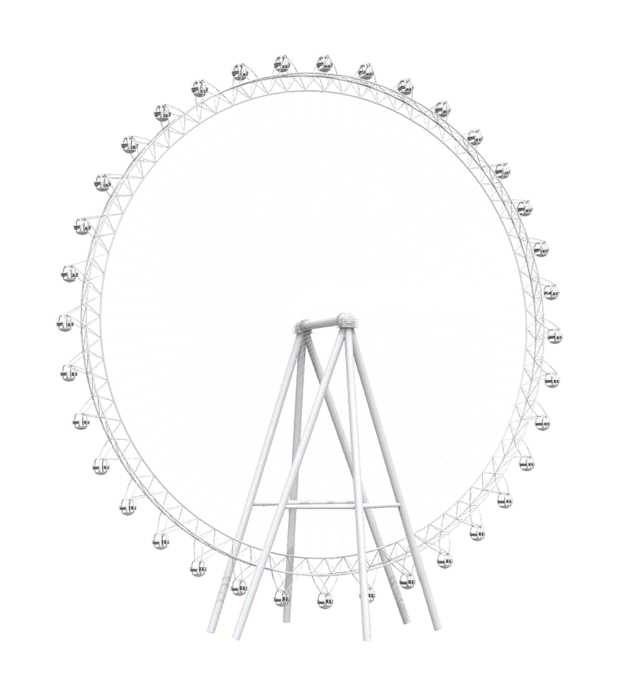 88?觀覽?,塔架由6根?柱構(gòu)成,觀覽?的設(shè)計打破傳統(tǒng)摩天輪的界限,將拉膜造型與摩天輪相互結(jié)合,融為?體,使摩天輪在感官上更加宏偉壯觀,專為地標項?打造。夜幕降臨,摩天輪運作時配以明麗變幻的燈飾與外觀造型相互呼應(yīng),使得摩天輪成為閃耀的地標打卡點。
